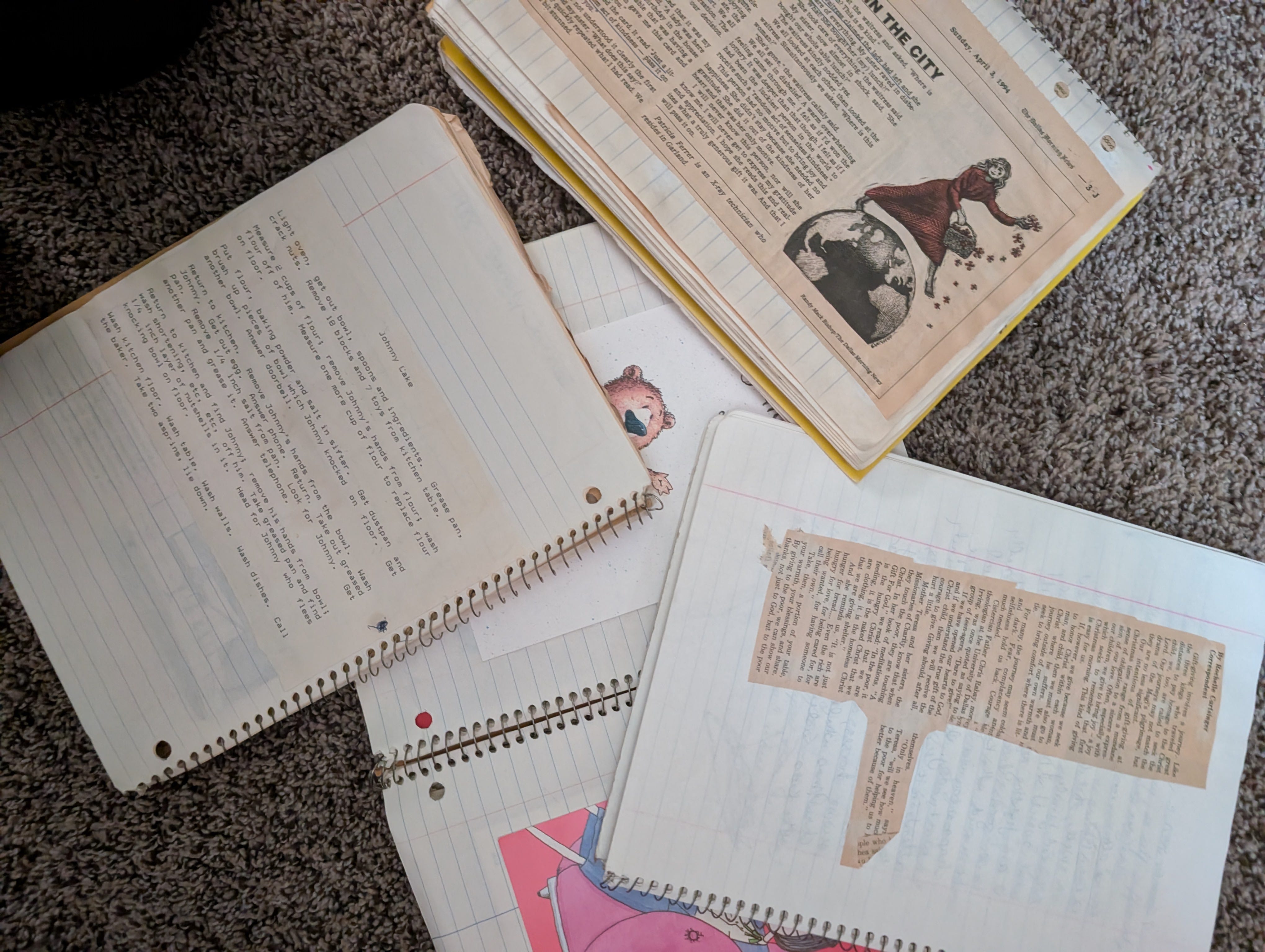 Three decades ago, in the thick of my years as Momma to our four kiddos, I cut out articles from newspapers1 that I found interesting and glued them into spiral notebooks. These college-ruled wonders also contained scribbles of life advice, memorable adages, quotes from books I’d read, cartoons, mementos from my children, and entries about our family life or cultural moments. News about random acts of kindness or recent elections nestle next to notes about first words and first steps. It was part note-taking, part scrap-booking, and part journaling.